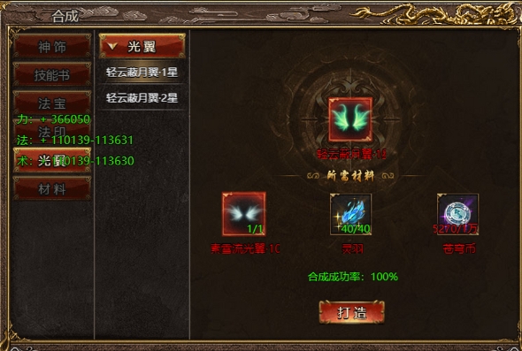 成功率:注灵系统具有100%的成功率,每次注灵都会提升光翼的等级。
