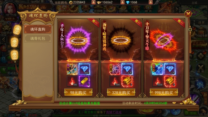 日常活动:除了直购礼包,玩家还可以通过参与游戏内的日常活动来获取魂环和魂骨。例如,完成特定的任务或挑战副本,可能会有魂环魂骨的掉落。