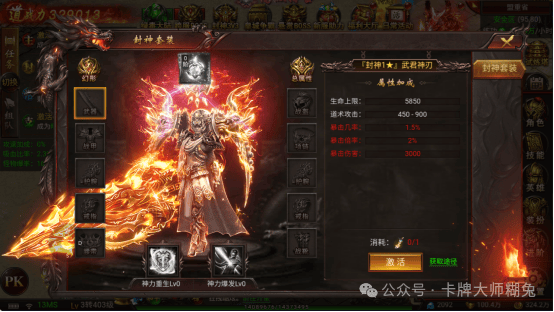 核心属性:封神套装的核心属性是内力恢复,同时增加暴击几率和暴击伤害。