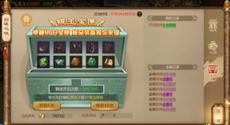 白银宝匣:使用白银秘钥开启白银宝匣,可获得高阶坐骑装备。