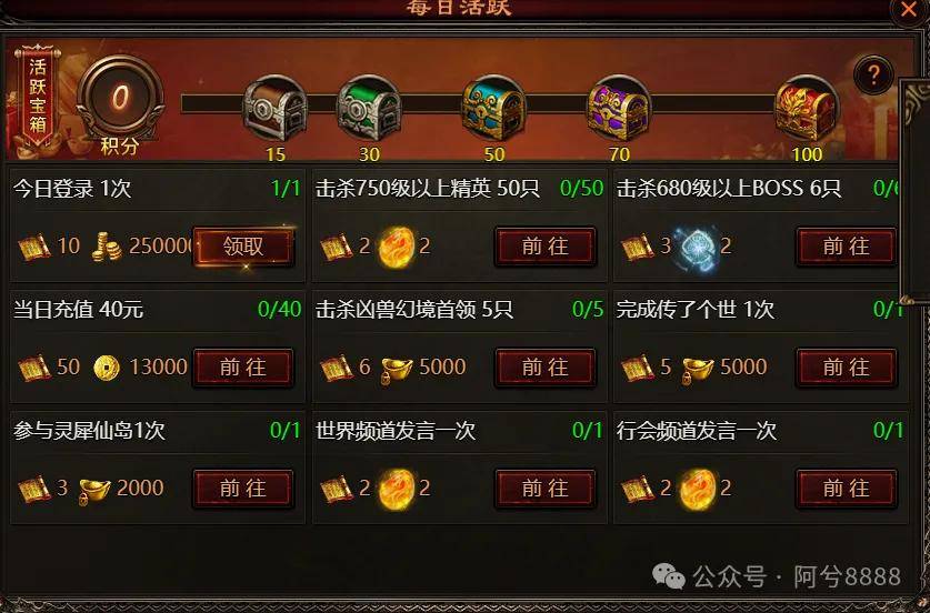 建议玩家优先完成那些奖励活跃积分较高的任务,例如击杀高级BOSS或完成特定活动任务。这些任务不仅能快速积累活跃积分,还能获取更丰厚的道具奖励,帮助玩家更快提升战力。