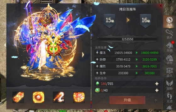 法阵系统是《傲世龙城3D》中提升角色实力的重要途径之一。通过合理升级法阵,玩家可以获得显著的属性提升和特殊的套装属性。