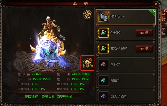 获取方式:入手每日礼包的特技坐骑宝箱,有概率获得。