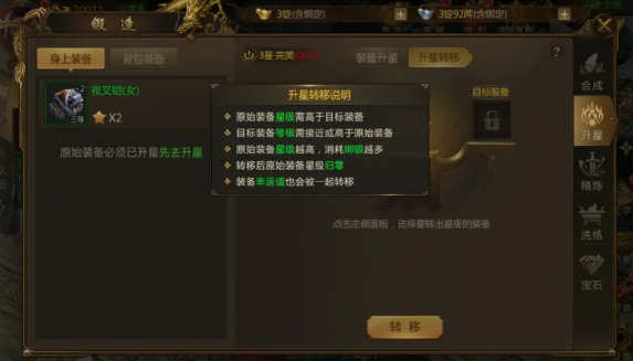 升星宝石是提升装备属性的关键道具。通过使用升星宝石,玩家可以提升装备的星级,从而获得更高的属性加成。升星过程中,玩家需要消耗一定数量的升星宝石,一次性放入的升星宝石越多,升星的成功率就越高。