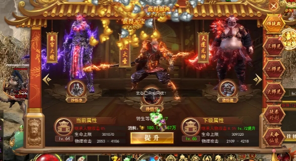 解锁“沙悟净”“猪八戒”“孙悟空”三个徒弟后,可以同时出战,大幅提升刷怪速度。师徒礼包可以让徒弟继承角色50%的属性,搭配暴击技能,能够进一步提高群怪效率。合理利用师徒系统可以为玩家节省大量的时间和精力,提升升级和战力提升的效率。