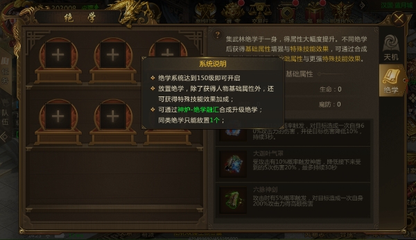 在《龙途天下》中,绝学系统是提升角色实力的关键途径之一。当开服天数达到150天且角色等级达到150级时,绝学系统正式开启。通过集齐不同的绝学,玩家可以获得显著的属性提升和强大的特殊技能效果。以下是一份详细的绝学系统攻略,帮助玩家更好地利用这一系统提升战斗力。
