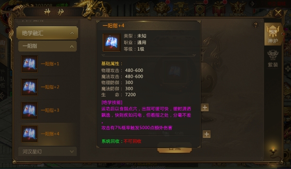一阳指:攻击时有5%的概率触发1000点额外伤害。