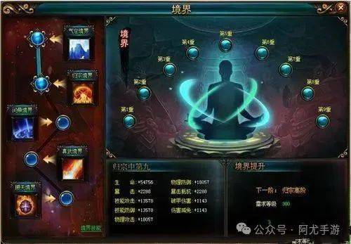 四圣封神的境界系统同样是在新区就开放的,玩家们可以通过消耗相应级别的境界丹来逐级升级。境界系统通过消耗境界丹升级,可以通过购买绑定元宝每日获取。每个境界都包含多个穴位,当境界丹足够时,即可激活相应的穴位。当所有穴位都被激活后,便可使用境界丹和通宝来进一步提升境界等级。
