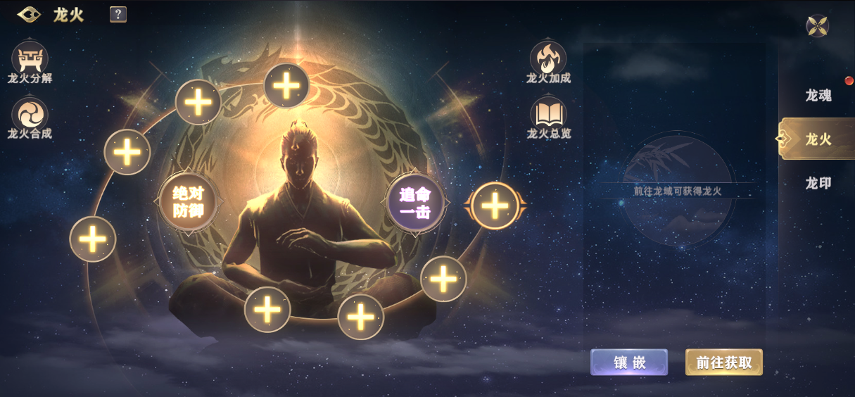 本命神龙系统是游戏中的重要玩法之一,分为龙魂、龙印、龙火三部分。