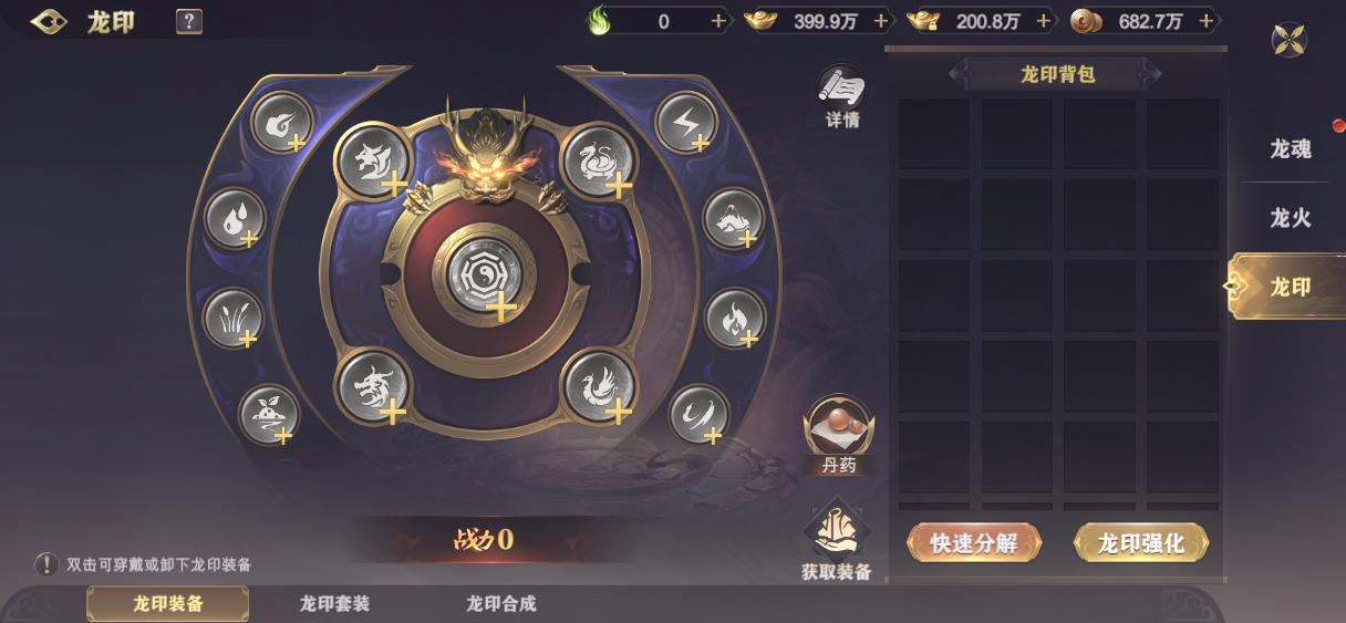 4.分解多余的龙印装备,可获得龙印精华,精华可用于龙印装备强化。