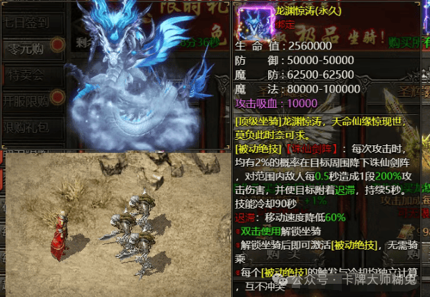 福利大厅零元购活动,玩家通过消耗灵符,兑换上方三个灵符礼包,即可获取绝版坐骑皮肤,龙渊惊涛。