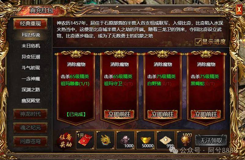 第三层开服300天 神威值要求1500神威值掉落装备 5-6星