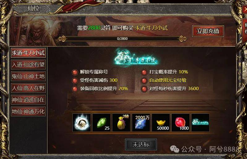 仙位从低到高分为: 求道·牛刀小试、、入道·仙途有望、鬼仙山神土地 、人仙·高人在野、神仙·逍遥自在、 地仙·神通万。每个仙位激活后,都会解锁不同的技能、属性加成及专属特权,下面我们逐一分析 各档仙位激活需求核心奖励 。