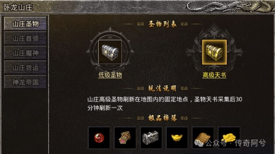低级圣物:刷新快,但奖励不如高级天书,适合快速积累资源。
