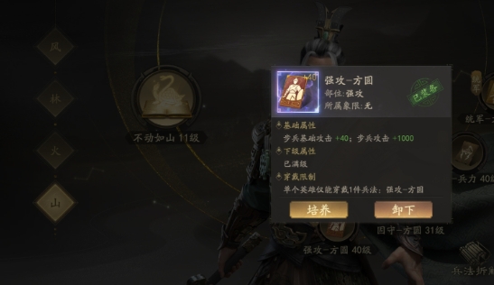 步兵属性提升:升1级积蓄,步兵攻击+35,防御+15,兵力+45。积蓄可以在S6白嫖获得。因为这条天赋,袁绍的步兵既肉且硬,伤害还高。