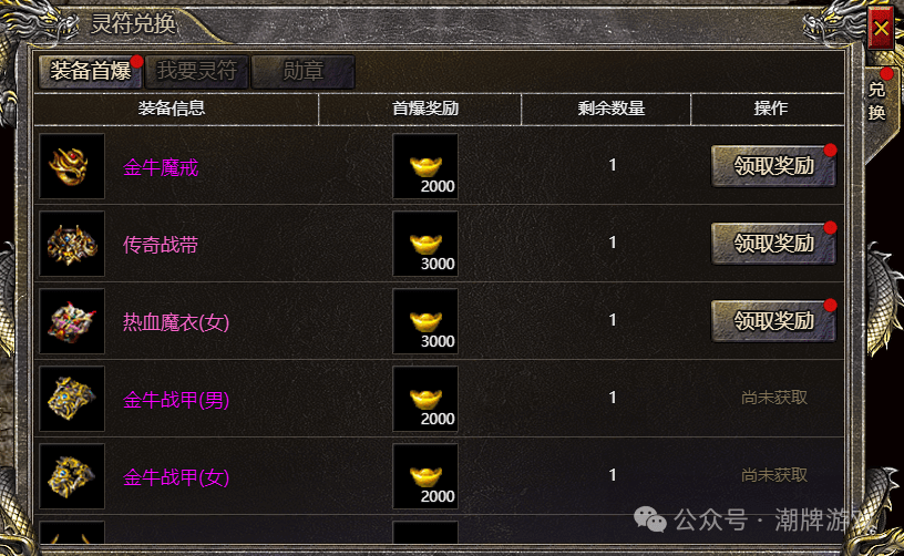 首爆奖励:首次打出稀有装备直接获得大量元宝+灵符