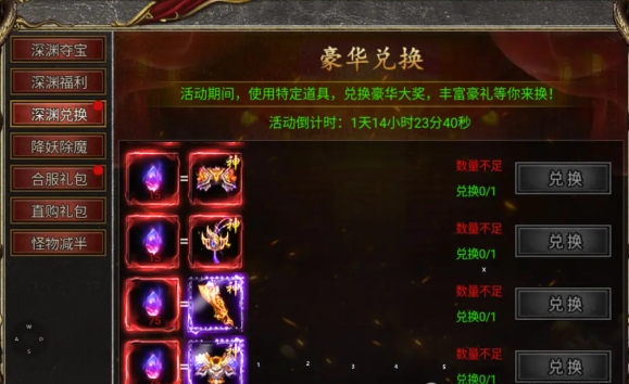 雷神套装的兑换需遵循特定顺序:戒指→手镯→鞋子→腰带→头盔→项链→衣服→武器。每次合区活动可继续未完成的进度,无需重新开始。这一机制为玩家提供了分阶段获取的可能,可以根据自身资源情况合理规划投入。
