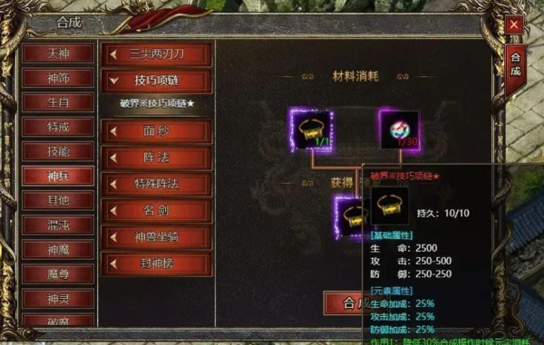 技巧项链是《白蛇传奇》中提升战力的关键装备之一。通过合理获取和管理合成材料,玩家可以在前期快速提升角色的属性和战力。技巧项链不仅能提供显著的属性加成,还能降低元宝消耗,增加技能熟练度,帮助玩家在游戏初期快速成长。