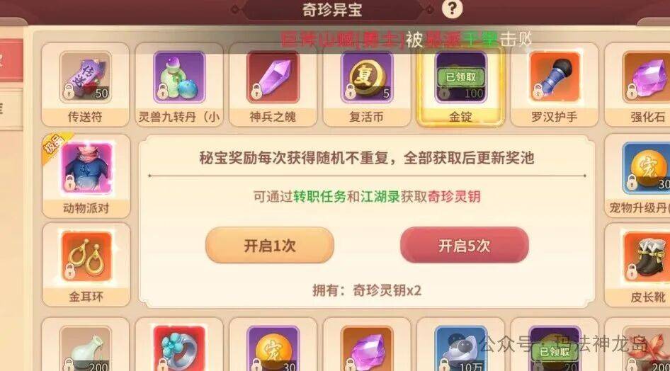 江湖秘宝是游戏中获取稀有道具的核心玩法之一,通过抽取秘宝库,玩家可以获得丰厚奖励。