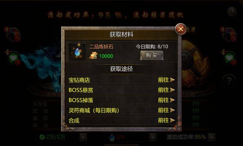 渡劫并非易事,它需要玩家精心准备。首先,异兽需要消耗大量的经验,而异兽丹则是提供经验的重要道具。此外,炼妖石也是不可或缺的材料。每次渡劫,玩家需要合理分配这些资源,确保异兽有足够的能量应对天劫。