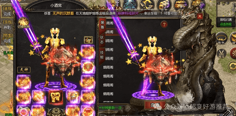 除妖高层住宅:无门票费、玩人少、图大、怪多并更新快,与此同时会掉落转生石块、解除限制符、11 级及以上武器装备。13 万进攻上下在除妖 3 层一小时盈利约 1200 万余元宝。进攻高过 10 万时,可首先选择在这里放置挂机。