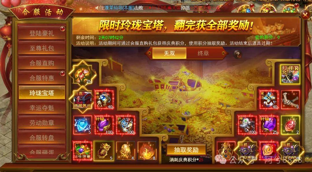 维京传奇折扣包服微变攻速传奇限时活动玲珑宝塔活动期间可通过合服直购礼包获得庆典积分,使用积分抽取奖励。活动结束后道具过期!