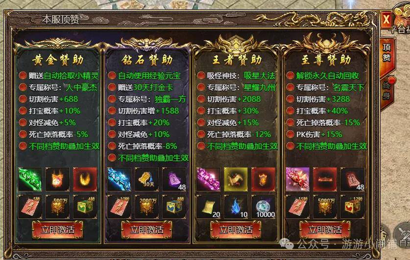 上古战歌斗帝传奇赏金传奇折扣返利特戒之力第53天解锁,玩家需要在跨服或个人的福利广场中获得特戒强化石,这些强化石专门用来强化特戒。在强星系统中,53天后也会新增特戒的强星选项。暴击、技能等级和铭文是提升伤害的关键。技能等级一定要提升,铭文则需要在每月第二周的周二铭文特惠活动中尽可能多地获取。至于暴击,可以通过多种途径获得,比如关注活动中的时装幻武等。