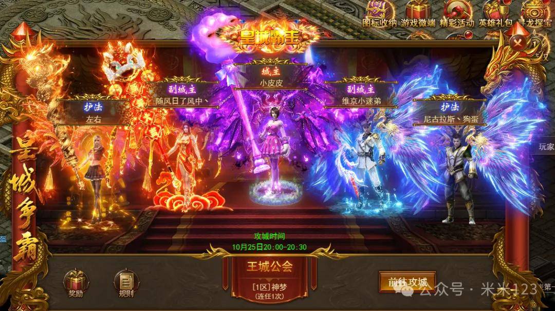 5.活动结束时,临时占领沙皇宫的行会,将成为皇城霸主行会6.攻城活动开始前,会回收所有城主特权