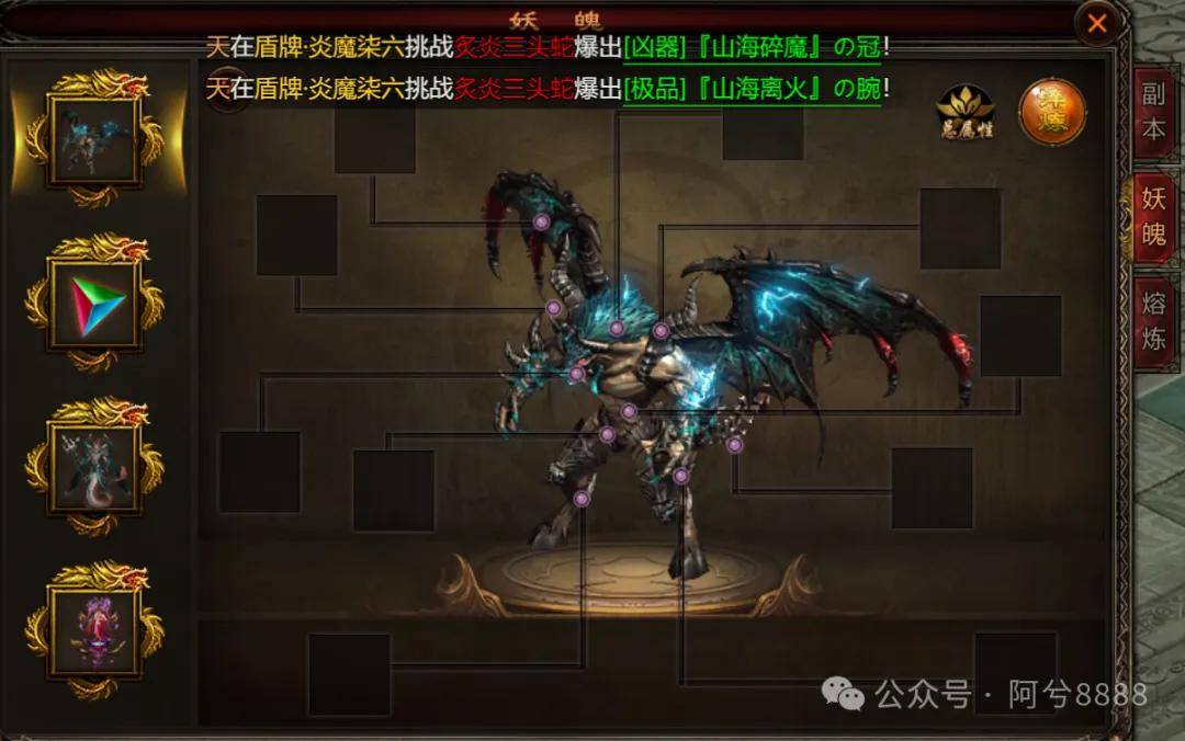 四圣封神折扣包服穿戴一套妖魄装备可获得副本怪物类似技能副本获得材料可用于淬炼装备,获得大量属性;多余装备可在组队副本 -熔炼中熔炼,获得的材料可用于淬炼妖魄装备。