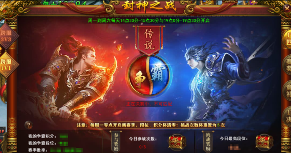 决赛开启:周日19:00会开启争霸赛,跨服1v1排名前30名的玩家可以参与决赛。