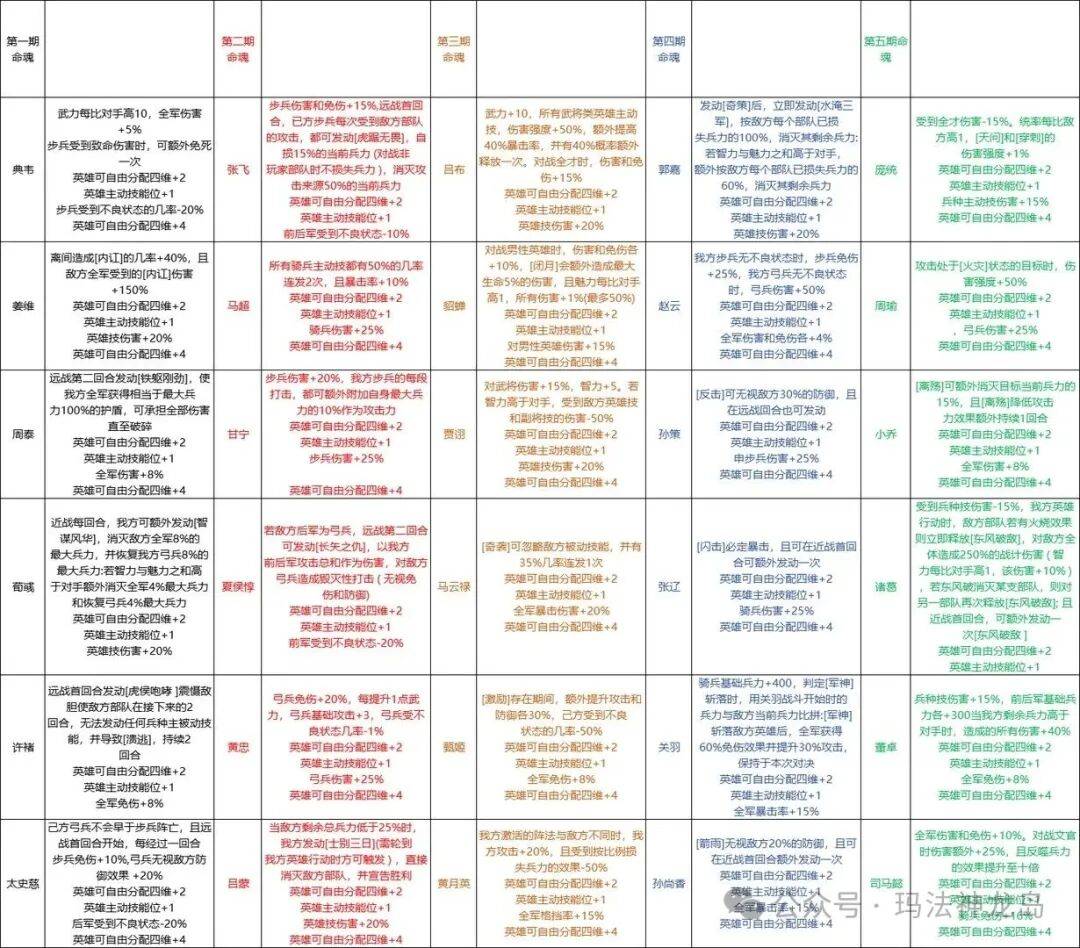 即将进入S6或者准备玩到S6的小伙伴可以对照首期命魂表,看看自己目前培养的极限单将命魂效果有没有辜负你的期待,后续会陆续更新其他期的命魂效果。