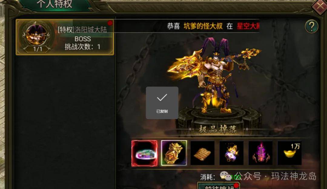 开服30、60天分别关闭1、2大陆野外地图,同时开启对应特权BOSS。