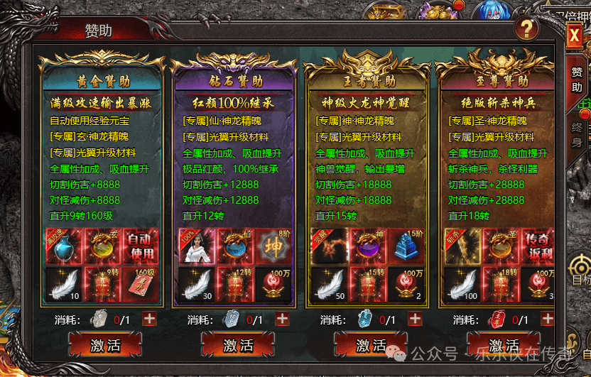 坐骑系统:可从【坐骑按钮】进入,坐骑系统全服开启,全新神驹坐骑免费送!可通过坐骑契约升阶您的初始坐骑,升级强力爽技!充值还可解锁多种化形,激活后可开启多套骑战装备,佩戴击杀坐骑BOSS或通过起源灵石合成所获得的骑战装备可获得强力属性,收集骑战套装更能整体提升坐骑属性,大幅提升玩家战力。每个化形有专属的独特技能,带给您砍瓜切菜般的体验!