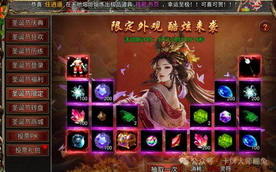 哈喽大家好我是你们的糊兔,今天糊兔给大家带来的是白蛇传奇折扣服圣诞节活动!九曲封神黑钻月卡VIP作用介绍的攻略!