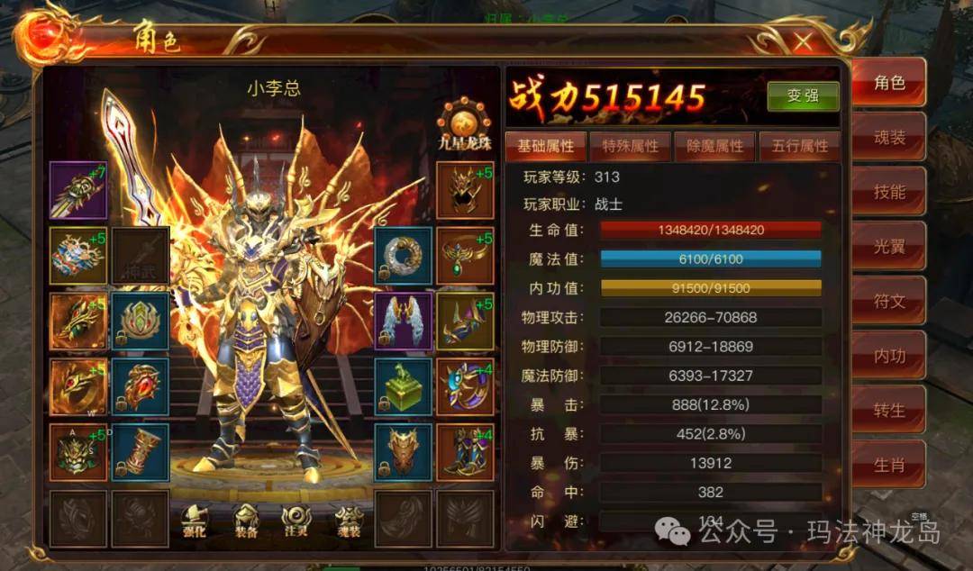 在装备强化时,消耗七彩石可直接提升武器/衣服的 基础攻击与生命属性,且没有失败风险。合成 60级套装(如雷霆战甲)是必备材料,集齐设计图和七彩石即可激活 技能加成与炫酷外观!