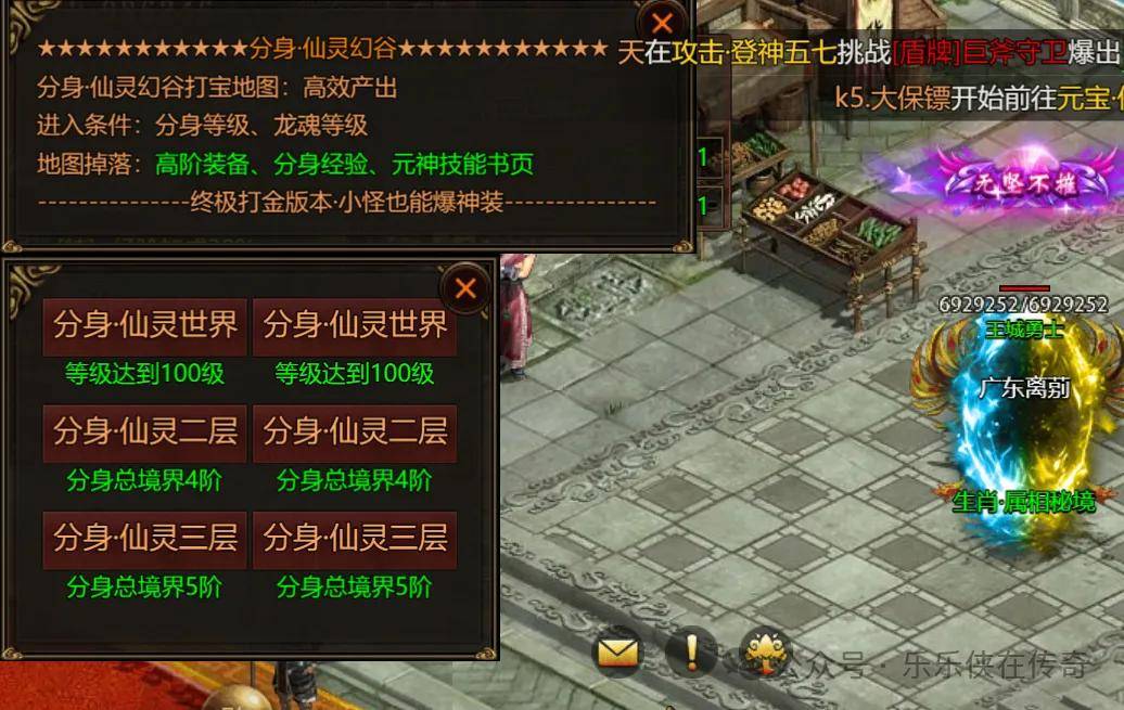 四圣封神八荒主宰传世极速版战神蚩尤分身.仙灵幻谷打宝地图:高效产出进入条件:分身等级、龙魂等级地图掉落:高阶装备、分身经验、元神技能书页。终极打金版本.小怪也能爆神装分身.仙灵世界等级达到100级进入,分身.仙灵二层分身总境界4阶进入,分身.仙灵三层分身总境界5阶进入。