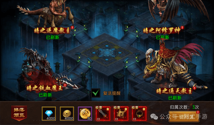 至于技能书页这种关键材料,老哥们可以重点关注两个渠道:一是挑战高爆BOSS,比如修罗天界的个人BOSS,不仅不会被抢,掉落还稳定,首次击杀还有钻石奖励;二是参与每日限时活动,像武道会能产装备精炼石和技能书,跨服虚空裂缝还能掉特戒和高阶技能书,这些活动千万别错过。