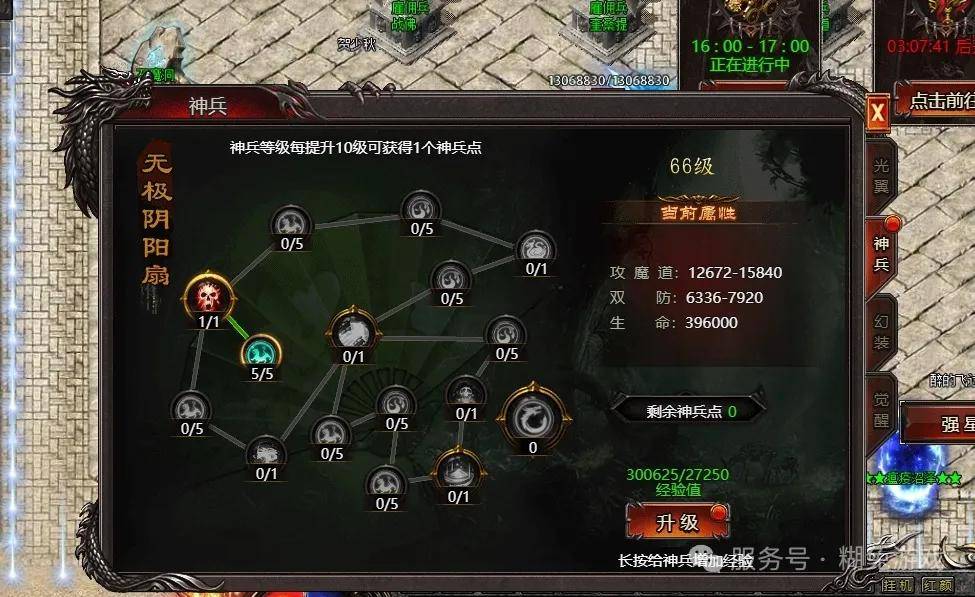 升级神兵需要经验值,这个经验值我们在神兵秘境地图里面击杀任意boss都可以获得,前期的话击杀1只boss可以升2级。每升10级就可以获得1个神兵点,神兵点可以激活对应的神兵技能。