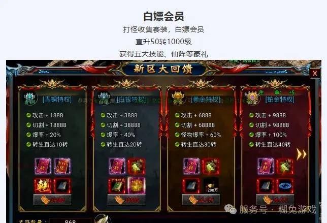 新手进区可以考虑花个五十米解锁全部会员!要是散人零氪玩家也别慌,咱可以选择刷怪做任务,用灵符或者收集装备图鉴就能白嫖会员。这五十米的作用可不止于此哦,还能直接把封号晋升到侍郎,激活宠物鼯鼠!同时还能解锁【神剑干将】,增加刷怪的元宝上限和灵符上限。