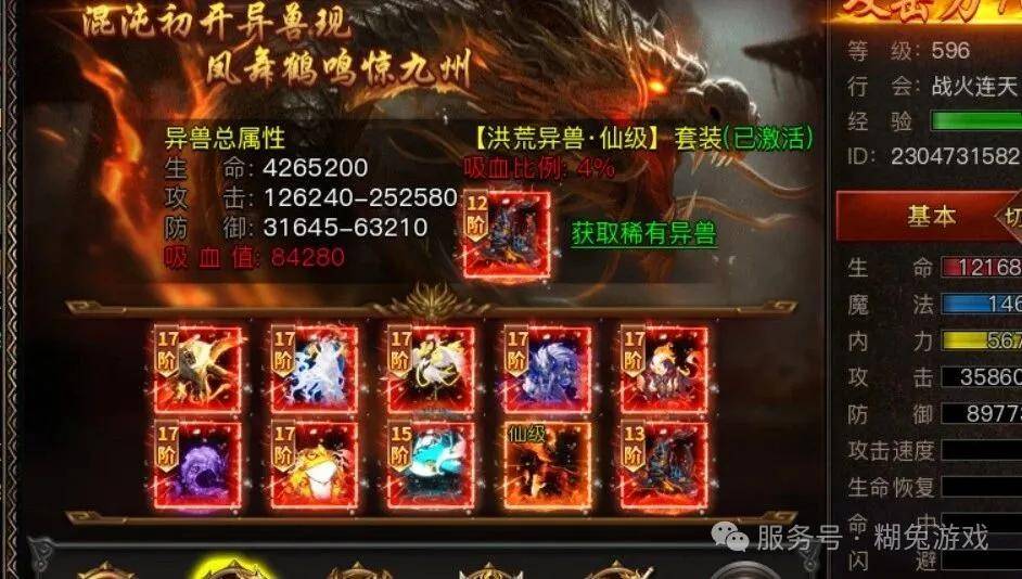 在游戏中异兽一共有十个,每个异兽增加吸血值,等阶越高加的越多,集齐十件套大量增加吸血属性百分比,十个异兽中有两个属于稀有异兽,赤炎麒麟和邪魔虎鲸,这两个打怪是爆不出来的。