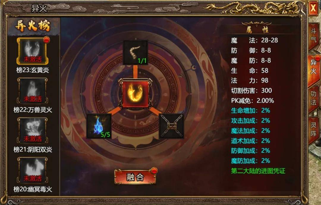 上古战歌游戏中,玩家需要消耗沃玛号角*1、异火之息*5合成1阶异火。玩家可通过下述步骤快速获取1阶异火: