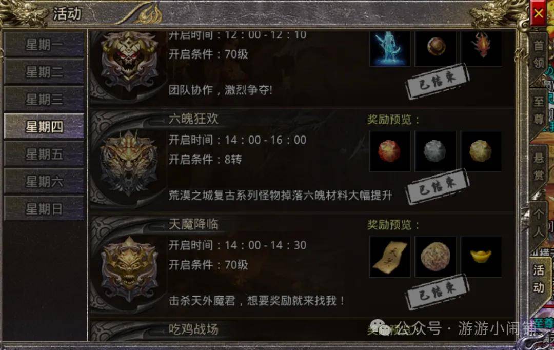 怒火一刀极速版狼影传说折扣渠道开启荒漠之城地图后,每天下午的14点到16点会开启六魄狂欢玩法,很多玩家反映,活动期间点击六魄狂欢之后直接传送到荒漠之城了,活动写着“荒漠之城复古系列怪物掉落六魄材料大幅提升”,只要在这个时间段内在荒漠之城杀怪,就会提高六魄材料的爆率,就这么简单。