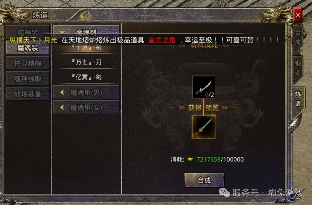 武器和衣服需要消耗剑甲精炼石,其他部位需要首饰精炼石,这些材料可以通过熔炼魔魂装备获得,但是几率很小。