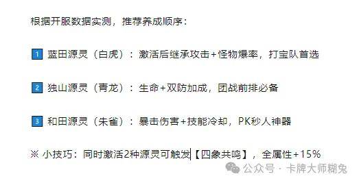 攻略可以阐明原理,但真正的源灵掌控者,懂得在版本更迭前夜抢占先机。独自摸索,不仅耗费资源,更将错失制霸服务器的黄金窗口。小关小注「卡牌大师糊兔」公众号,获取你的源灵密匙——这一次,让人与兽的羁绊,突破凡尘的极限!