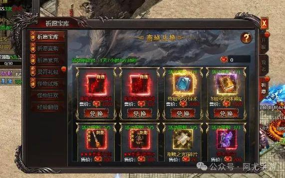 如果想获得比较多的祈愿石可以参加祈愿活动,都可以获得很多的祈愿石和对应档位的灵符,面甲碎片等其他材料。获得祈愿石后就是到祈愿宝库兑换道具。咱们小氪玩家推荐最下面的2个时装,大佬的话可以考虑拿下魔魂装备!