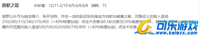 二技能静默之箭有沉默效果,团战时候对对面的法术克制超级大,也可以让对面有位移的英雄处于一个尴尬的境地,这一秒岂不是你拉开距离,输出的最佳时机。