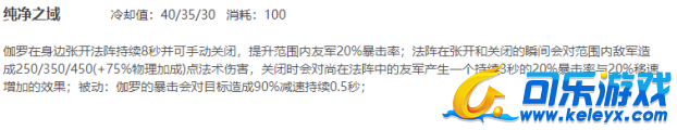 最后看看三技能大招的开关无需多言,注意位置就行,大家注意大招的被动:伽罗的暴击会对目标造成90%减速持续0.5秒。这就是我们今天玩法的核心,大家可以想一想减速90%是什么概念,基本就是原地不动。原地不动的敌人,不就成了活靶子任由我们输出。这个被动触发需要暴击,我们就要想办法提供高额暴击率,能达到100暴击更加完美。