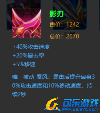 这里的影刃就是我们今天说的这个关键装备,我们看看这件装备的属性及被动。