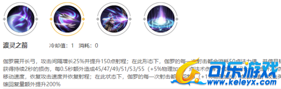 首先看看一技能,大家可以看出官方给出伽罗一技能的描述是增加150射程,每次攻击都会使敌人或的持续的损伤,后期距离就是我们的1v5的关键。后期如果能拿到蓝BUFF,基本可以实现全程超长射程干扰。是后期的核心持续输出能力的关键。