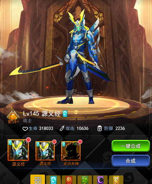 我们可以将天神从精英合成为精英+,精英+到史诗,史诗再到史诗+,是我们给天神升级的一个好办法。